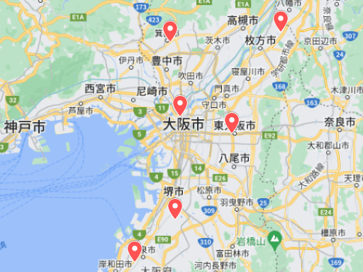 大阪府内には、以下の7つのショールームがあります。